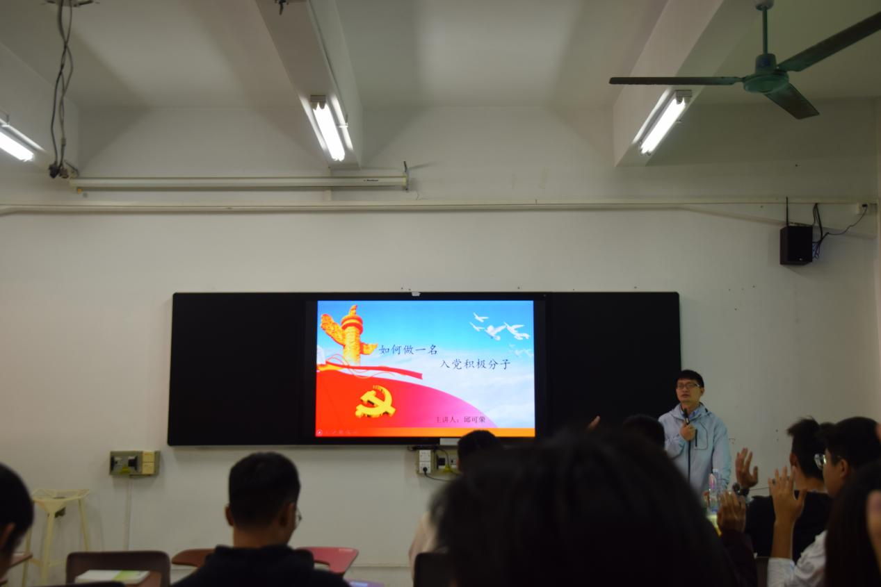 12月3日,粤台学院分党校在莞城校区机电楼312教室举行第12期入党积极分子培训班第三讲。此次党课由学院辅导员邱可荣主讲,第12期全体入党积极分子参加。