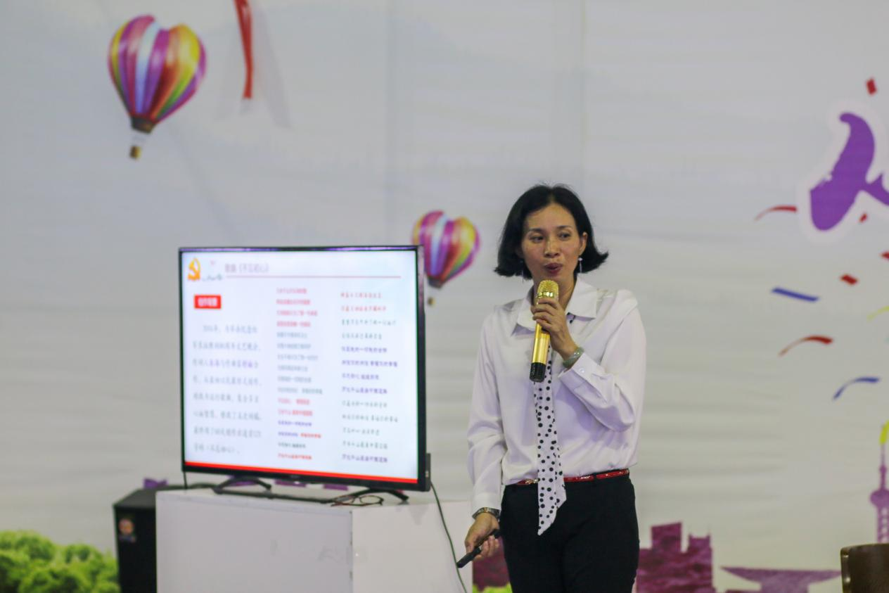 合唱曲目《长征组歌》之《报喜》以及歌曲《不忘初心》的曲目创作历史背景、时代意义进行了详细介绍。同时,宋美娴结合汶川地震纪念日,共同回顾2008年党中央带领全国各族人民取得抗震救灾的重大胜利。最后,宋美娴结合自己在参加庆祝建党一百周年书画创作比赛的作品为例,鼓励广大青年学生要以党史学习为契机,努力学习,不断提高个人综合素质,成为社会主义事业建设者和接班人。