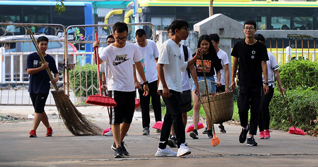 新学期劳作教育课程在莞城校区正式启动。学院院长陈伟、王春源、各系主任、职能部门老师、团总支学生会学主席团、2017级劳作模范以及学院2018级所有学生出席。