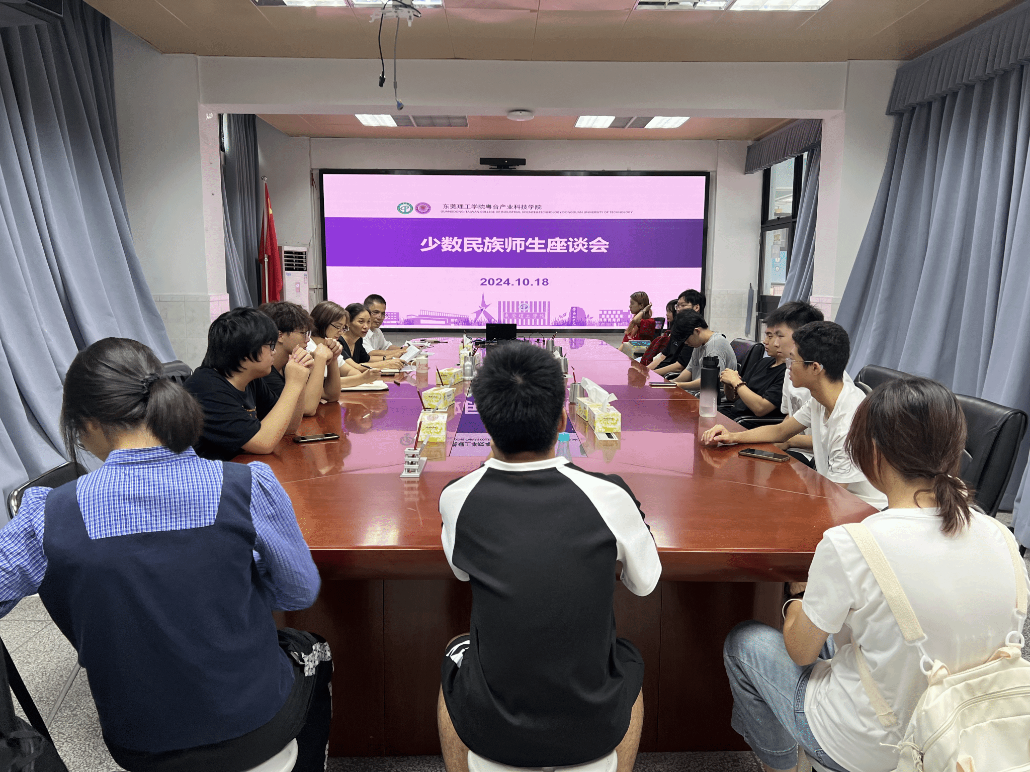 会上,壮族、回族、苗族、瑶族、土家族、布依族、黎族、白族、满族、仡佬族等少数民族师生介绍并交流自己的个人情况,学生分别从学习、工作、生活、民族习俗和文化等方面分享了自己的所思所感,并提出了目前在校学习生活和未来职业规划中的困难和疑惑。对于学生提出的问题和困难,老师们一一耐心解释并提出建议。