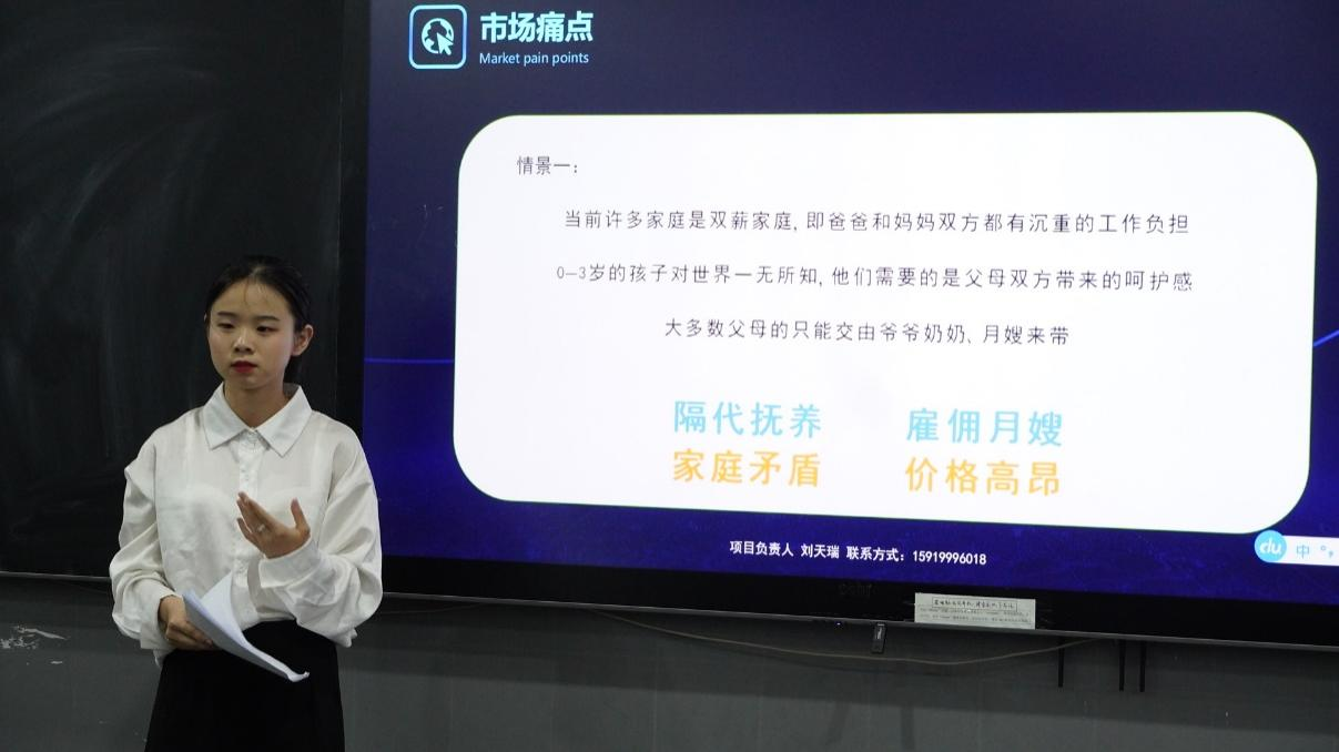 赛前,辅导员潘雁钦介绍了学院举办此次选拔赛的目的、流程和意义,他要求参赛队伍要抓住每次上台的机会,把团队项目成果更好地展现出来。赛上,由在众多参赛项目中脱颖而出的6支队伍,分别按照抽签顺序进行路演,在路演结束后,评委老师会对各支队伍的项目进行点评,指出各支队伍项目中所存在的问题,并提出相对应的项目改进建议。赛后,团委书记陈伟鹏对各支队伍给予了充分的肯定,并对此次选拔赛作了总结。他表示,“互联网+”大学生创新创业大赛不仅能促进大学生的创新创造能力,还能提升他们在未来职场社会中的竞争力。因此,他希望同学们能构建好自己的团队,认真打磨好自己的项目,勇创佳绩。