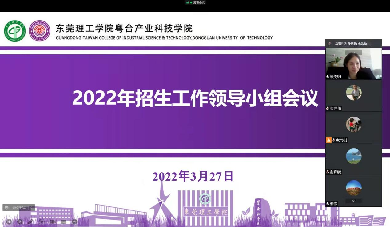 会上,宋美娴书记传达了学校2021年招生工作总结会议和2022年招生工作的有关要求;听取了学生工作办公室主任、学院招生工作联络人陈伟鹏关于2022年粤台学院招生宣传等各项工作筹备情况的汇报;对学院2022年招生宣传等工作进行了研究和部署。