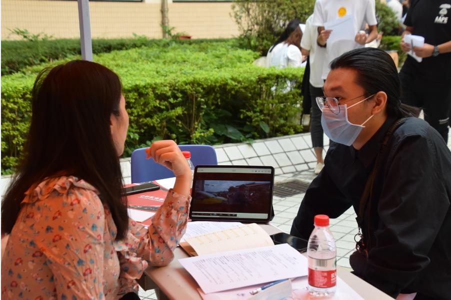 陈伟院长在招聘会伊始作了重要致辞,他表示希望同学们能够积极参加应聘,让企业家们看到属于粤台学子不一样的风采,并能通过实习得到更多成长的机会。紧接着,招聘会正式开始,同学们在工作人员的指引下有序进场,结合个人实际状况,了解不同公司岗位的招聘要求和发展历程,并向有兴趣的岗位提交准备已久的简历进行面试。面试官们耐心了解学生的教育背景、技能掌握、实践经历及个人能力等方面,也耐心解答学生们的疑问和困惑,甚至给予宝贵的建议,充分地展现了社会职场人应有的素质与能力。