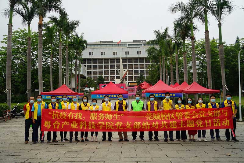 5月23日,粤台学院140多名毕业班学生根据学校分批、分时错峰返校安排,重返久违的校园。籍此契机,粤台学院党支部与莞城校区管委会党支部充分发挥结对共建优势,共同开展“抗疫有我,服务师生”主题党日活动。