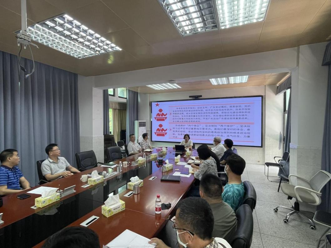 6月27日,粤台学院召开全院教职工政治理论学习会,学习中国共产党广东省第十三次代表大会报告--《忠诚拥护“两个确立”坚决做到“两个维护” 奋力在全面建设社会主义现代化国家新征程中走在全国前列创造新的辉煌》。