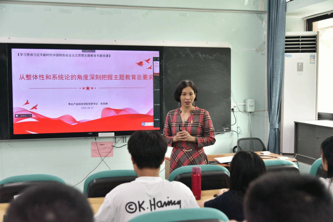 课堂上,宋美娴以《从整体性和系统论的角度深刻把握主题教育总要求》为题,重点围绕主题教育思想层面与大家做深入学习交流。她指出,学习贯彻习近平新时代中国特色社会主义思想主题教育已经在我校全面展开,强化理论学习是首要任务,全党深入开展学习贯彻习近平新时代中国特色社会主义思想主题教育,是党中央为全面贯彻党的二十大精神、动员全党同志为完成党的中心任务而团结奋斗所作的重大部署,是深入推进新时代党的建设新的伟大工程的重大部署。坚持用马克思主义中国化时代化最新成果武装全党、指导实践、推动工作,是我们党创造历史、成就辉煌的一条重要经验。