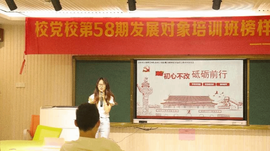 20级学生党员谢莹同学从学生会工作、社会实践等方面进行分享,她建议大家要合理规划时间,积极参加各种活动不断丰富自我,保持自律。同时要端正学习态度,不忘初心,牢记使命,她说,“成为一名党员,不仅意味着光荣和荣誉,更多的是一份责任,一种考验,一份贡献”。