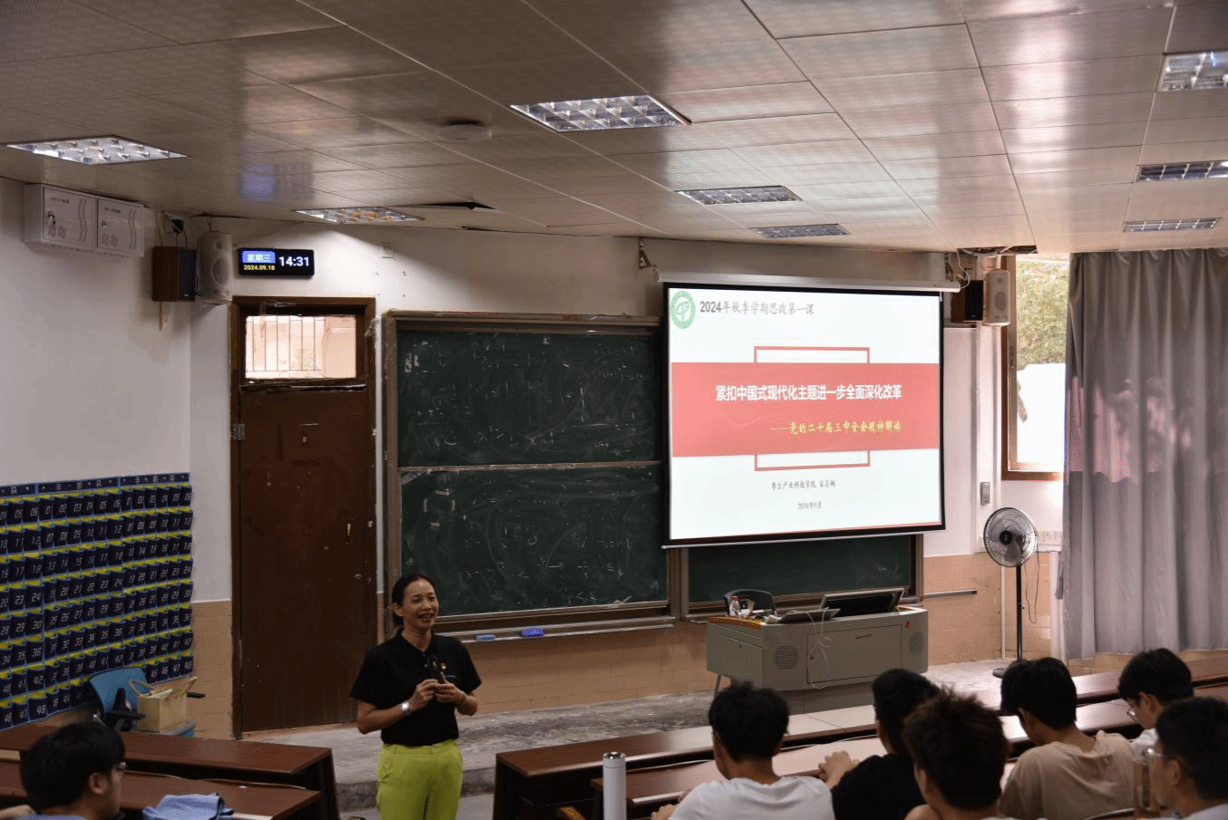 课上,宋美娴详细阐述了党的二十届三中全会的重要意义,指出这次全会是在以中国式现代化全面推进强国建设、民族复兴伟业的关键时期举行的一次十分重要的会议,是新时代新征程上推动全面深化改革向广度和深度进军的总动员、总部署。接着她以“为什么要深化改革开放,新时代的大学生应如何作为”为问题导向,与同学们展开了互动讨论。她强调同学们要紧跟时代的步伐,深刻领会党的二十届三中全会的重大意义、精髓要义和实践要求,切实把思想统一到党的二十届三中全会精神上来。最后她勉励同学们要坚定理想信念,涵养家国情怀,牢记时代使命,勤奋学习,刻苦钻研,以掌握扎实的专业知识和技能,积极投身中国式现代化建设的火热实践,充分展现莞工青年担当。
