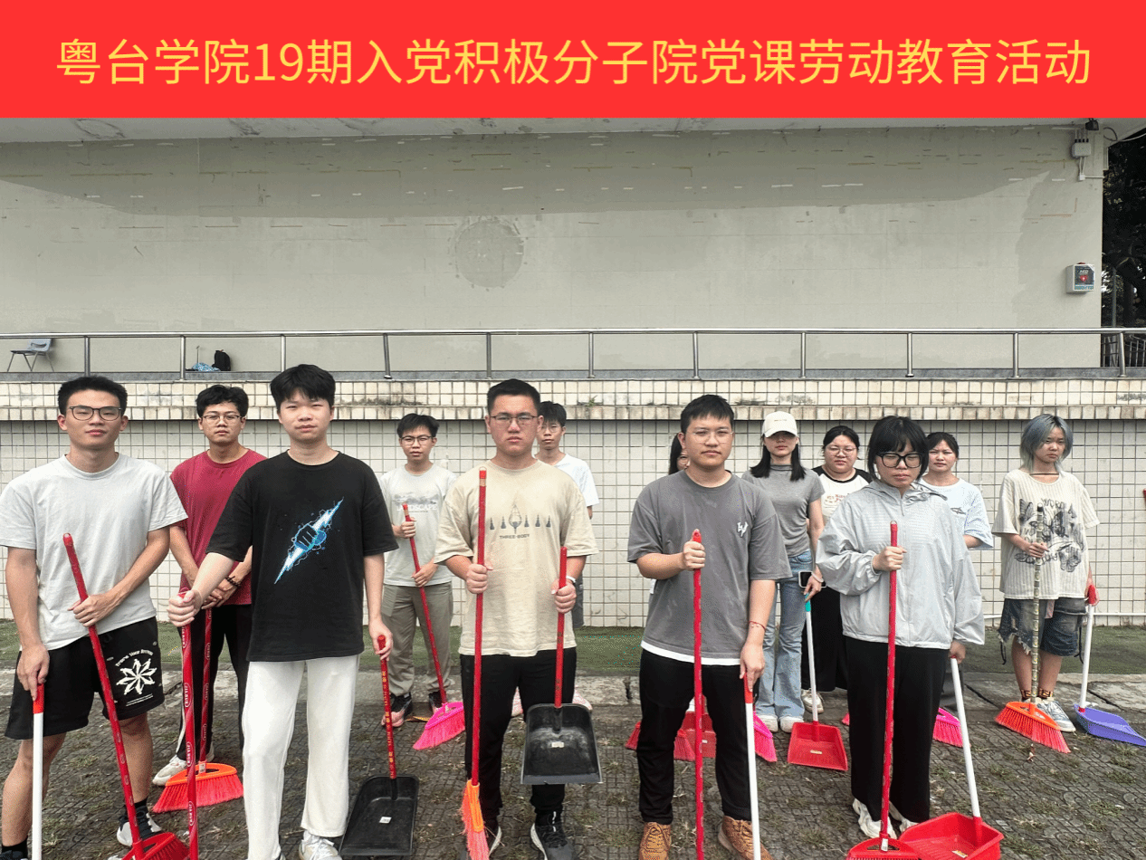 为强化党建引领作用,加强对入党积极分子的培养,4月24日,粤台学院党委组织19期入党积极分子培训班成员开展劳动教育实践活动,将党性锤炼与劳动实践相结合,躬身力行马克思主义劳动观,引导入党积极分子在服务校园中彰显先锋担当,以实际行动向党组织靠拢。