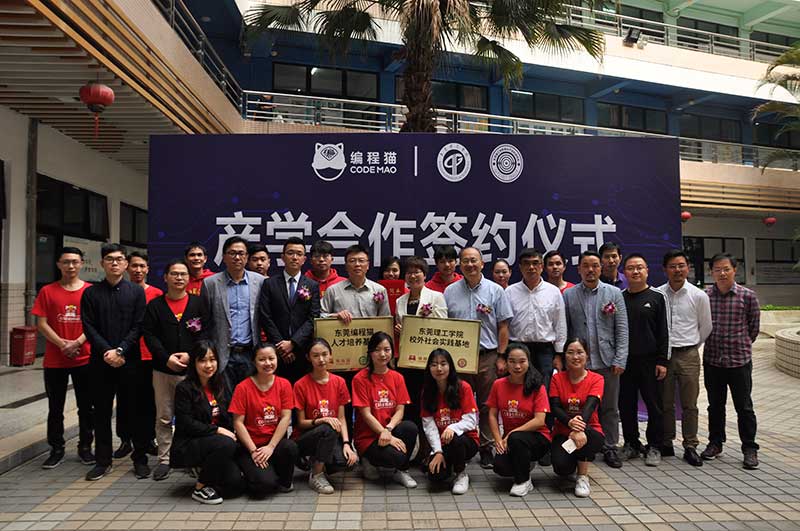 (以下简称“粤台学院”)与编程猫东莞体验中心产学合作签约仪式暨战略发布会在莞城校区实验楼举行,开展校企产学合作,为学生搭建实习实践平台,建立实习实训就业基地,培养优秀的编程人才。粤台学院院长陈伟、副书记王玉、编程猫总经理吴炼红、总监吴岳谋等出席。