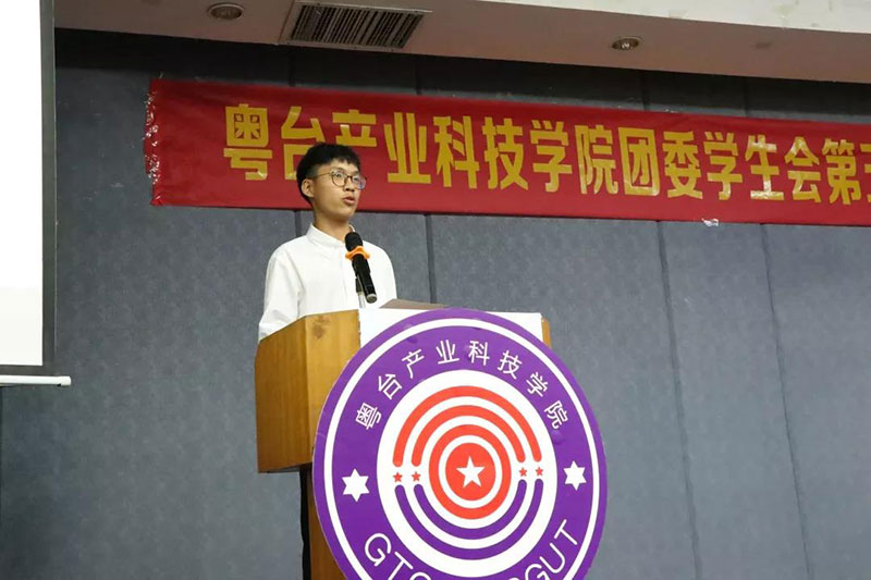 新干事代表余泽浩同学讲述了自己与粤台团委学生会的奇妙结缘,也表达了自己对接下来一年在团委学生会工作的期待,并代表全体团学5.0的同学向领导老师和学长学姐表达了自己对未来工作认真负责的决心。