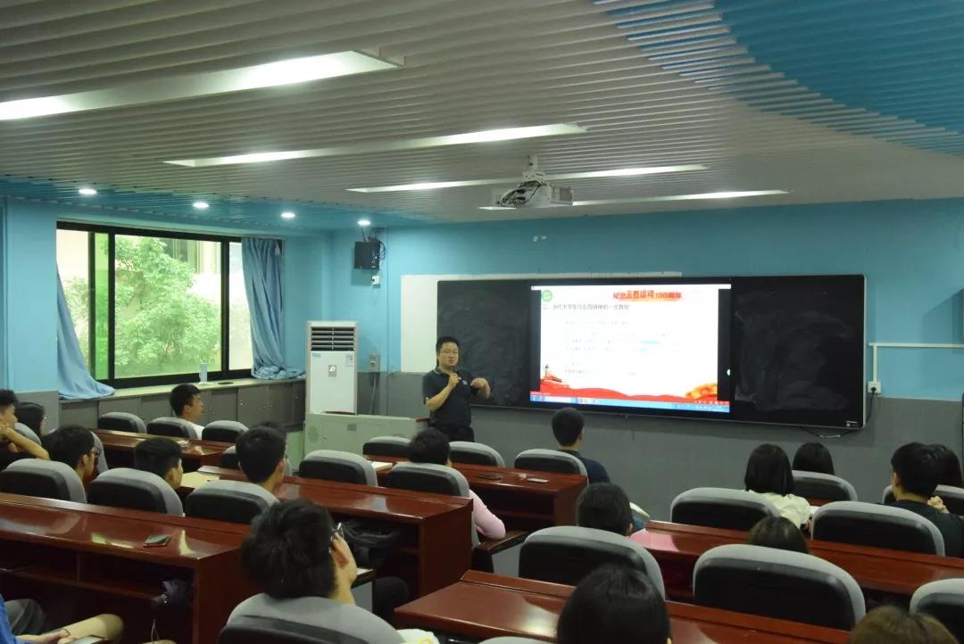 分党校第七期培训班第四讲在实验楼217举行,本次授课的主题为:“学习习近平总书记在纪念五四运动100周年大会上的讲话精神”,主讲人为91av