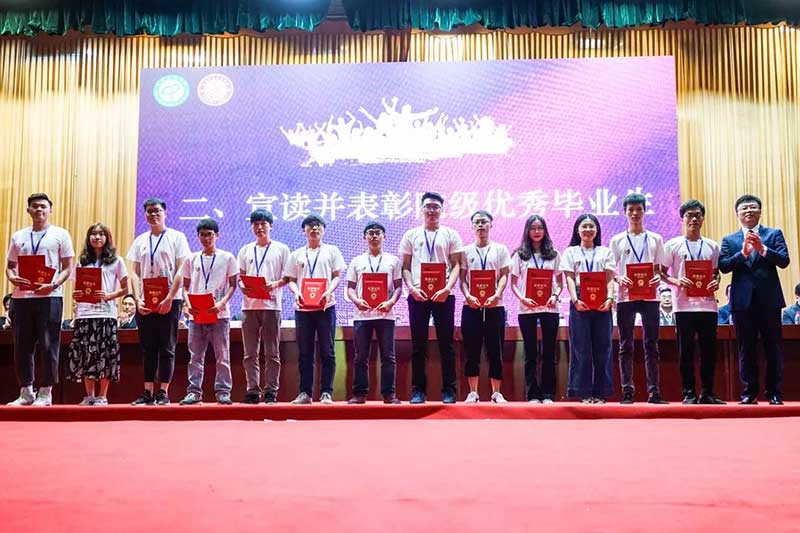 院长陈伟、院长王春源、副书记王玉、教务办正副主任、各系主任、粤台学院全体教职工及2019届全体毕业生。