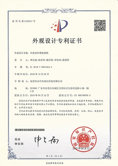 近日,91av 与东莞市吉洋自动化科技有限公司共同设计研制成功的吉洋光学检测设备产品,成功申请了三项外观设计专利:全自动外观检查机、全自动光学检测设备(顶部镜头在线式)、全自动光学检测设备(底部镜头在线式)。
