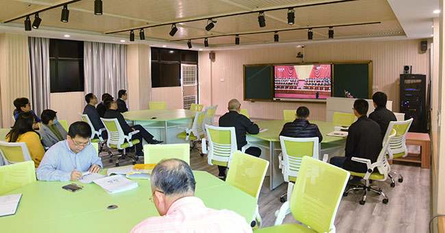 党支部组织全体党员、教师集中观看大会直播。