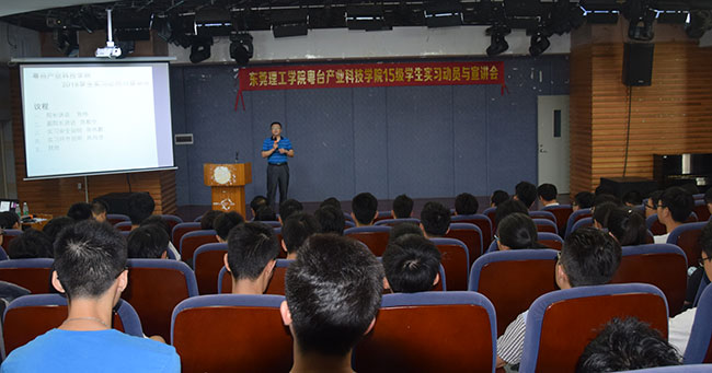 15级学生实习动员与宣讲会在莞城校区小剧场举行,学院院长陈伟、副书记王玉、副院长陈毅华等出席。