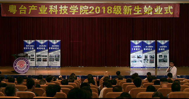2018级新生始业式在莞城校区学术报告厅举行,粤台学院院长陈伟、王春源,副书记王玉,各系系主任、辅导员、班主任以及助班、学院200位新生们参加了始业式。