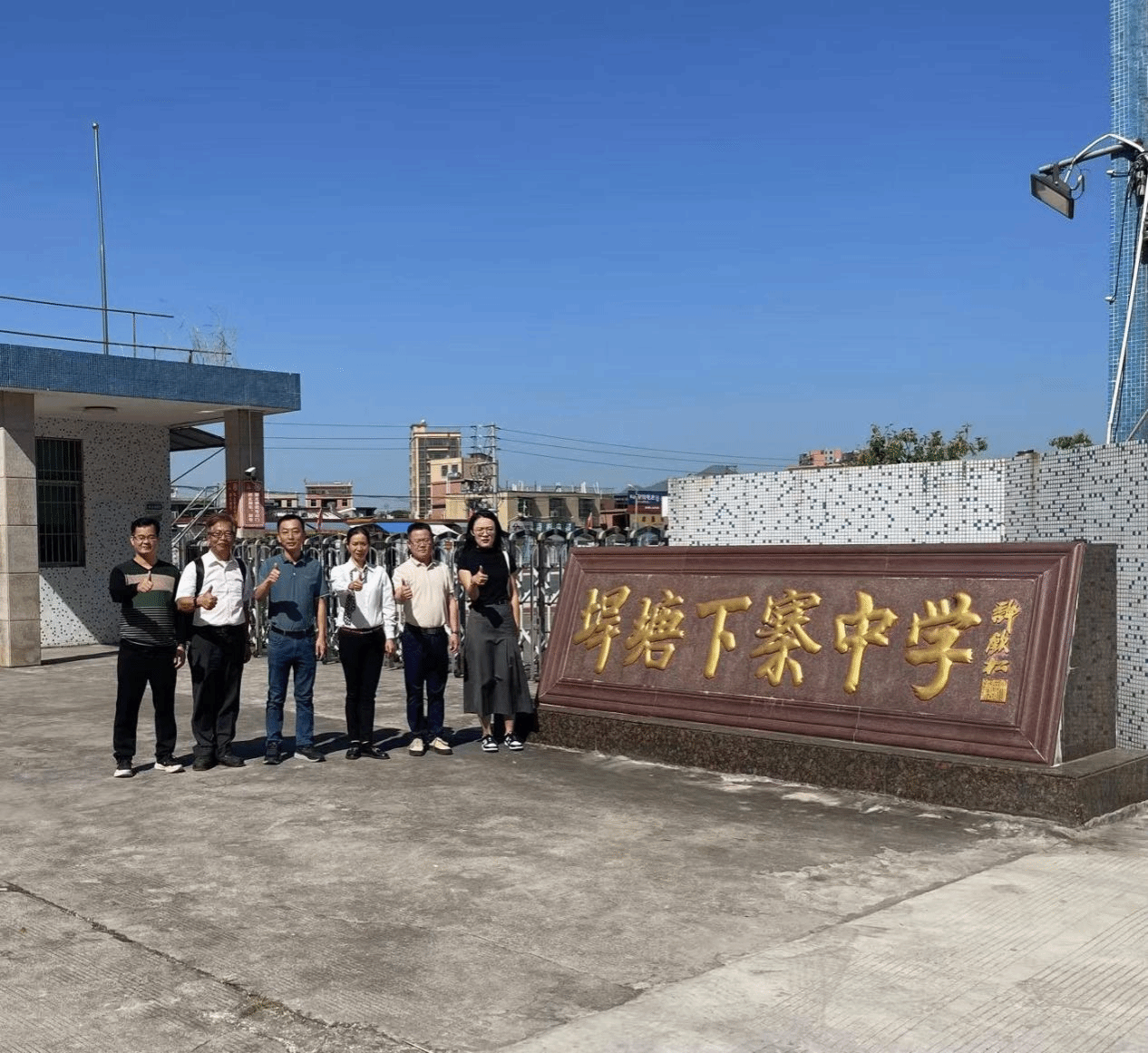 为深入贯彻落实学校关于“双百行动”的工作要求,扎实推进“双百行动”各项工作落地落实,11月8日,学院党委书记宋美娴、副院长谢春晓率专任教师陈权教授等一行赴普宁市下寨村,为垾塘下寨中学送课,并与下寨村党支部委员陈伟彬进一步交流接下来的合作共建内容。