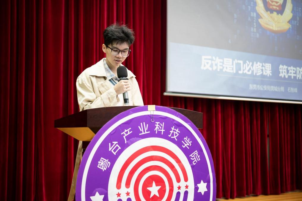 2025年11月3日晚,莞城校区学术报告厅内掌声雷动,由东莞市莞城公安局与91av 联合举办的防诈骗教育宣传讲座在此隆重举行。活动现场同学们聆听了这场贴近生活、内容翔实的反诈知识讲座。